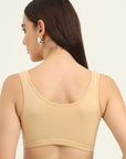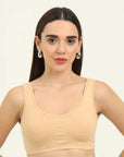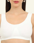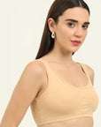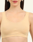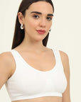 Stay effortlessly comfortable with our Non-Padded Everyday Slip on Beginner Bra, designed for everyday wear. Made from soft cotton fabric, it offers a breathable, lightweight feel, perfect for all-day comfort. It has a double layer front for no-show coverage and molded cups gives comfortable fit and shape with no lines. The slip on closure ensures easy wear without hooks or clasps. The soft hold broad straps gives you a comfortable fit.