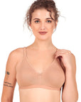 This everyday non-padded non-wired bra is crafted from soft and breathable cotton fabric, ensuring all-day comfort. Designed for daily wear, it provides a natural fit with a smooth finish under clothing. This backless bra features detachable and adjustable straps, offering versatile styling options for different outfits. It comes with one extra transparent strap for added support when wearing backless or strapless tops and dresses.