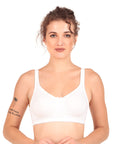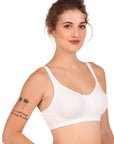 This everyday non-padded bra is crafted from soft and breathable cotton fabric, ensuring all-day comfort. Designed for daily wear, it provides a natural fit with a smooth finish under clothing. The broad fabric adjustable straps allow for a customized fit and fleece lined cups for concealment, making it a perfect choice for effortless support and everyday ease. Wide wings provide extra support and elevates your curves.
