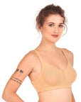 This everyday non-padded bra is crafted from soft and breathable cotton fabric, ensuring all-day comfort. Designed for daily wear, it provides a natural fit with a smooth finish under clothing. The broad fabric adjustable straps allow for a customized fit and fleece lined cups for concealment, making it a perfect choice for effortless support and everyday ease. Wide wings provide extra support and elevates your curves.