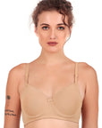 Designed for seamless support and all-day comfort, this wired lightly padded T-shirt bra offers a smooth finish under any outfit. The underwire provides gentle lift and shaping, while the detachable and adjustable straps allow versatile styling for different looks. Made with soft, breathable fabric, this bra ensures a perfect fit and a flattering silhouette for everyday wear.